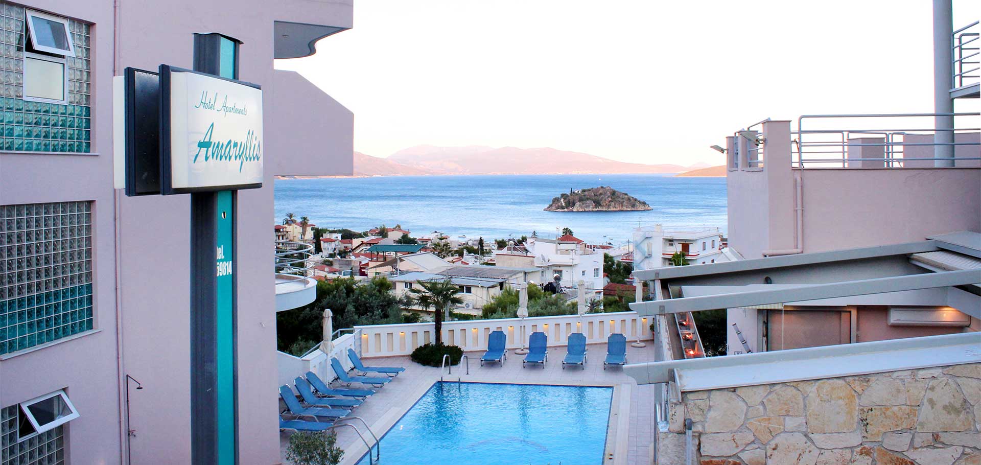 Just a 10 min walk from the beach, Amaryllis Hotel Apartment complex is a great choice for summer holidays in Greece or weekend breaks all the year round.